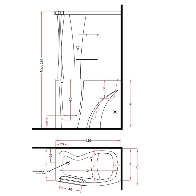 Gruppo Treesse Gen-Y Midi Ванна 120x70xh215 см — характеристики та опис