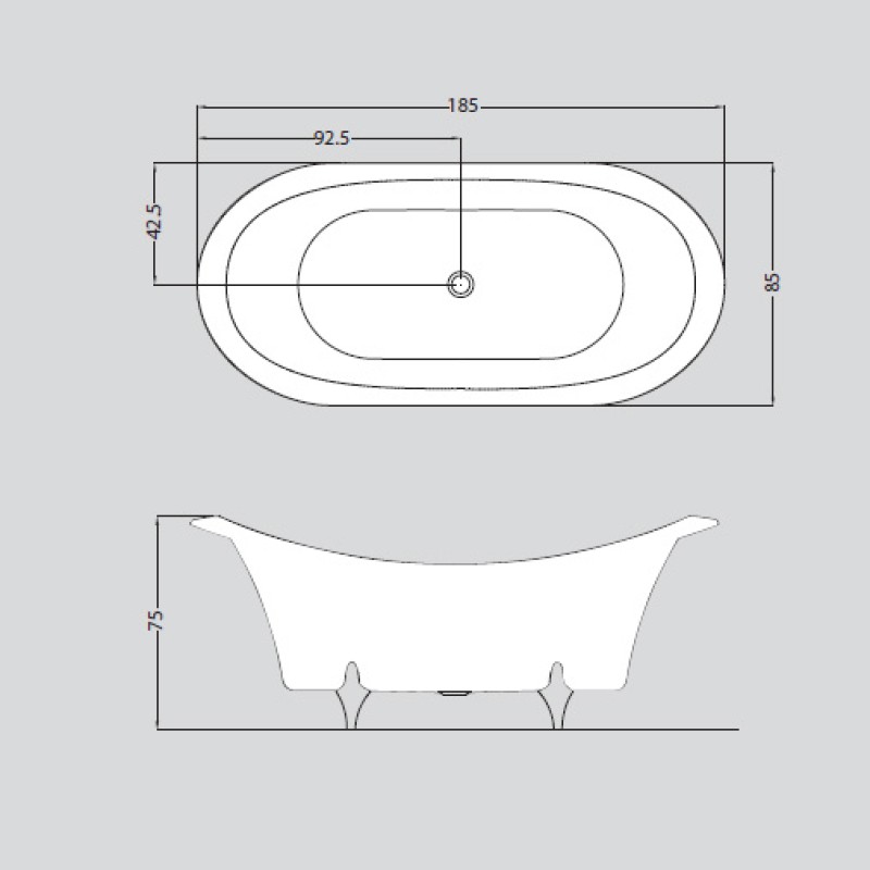 Gruppo Treesse Grande Dame Ванна в классическом стиле 185x85xh75 см — характеристики та опис