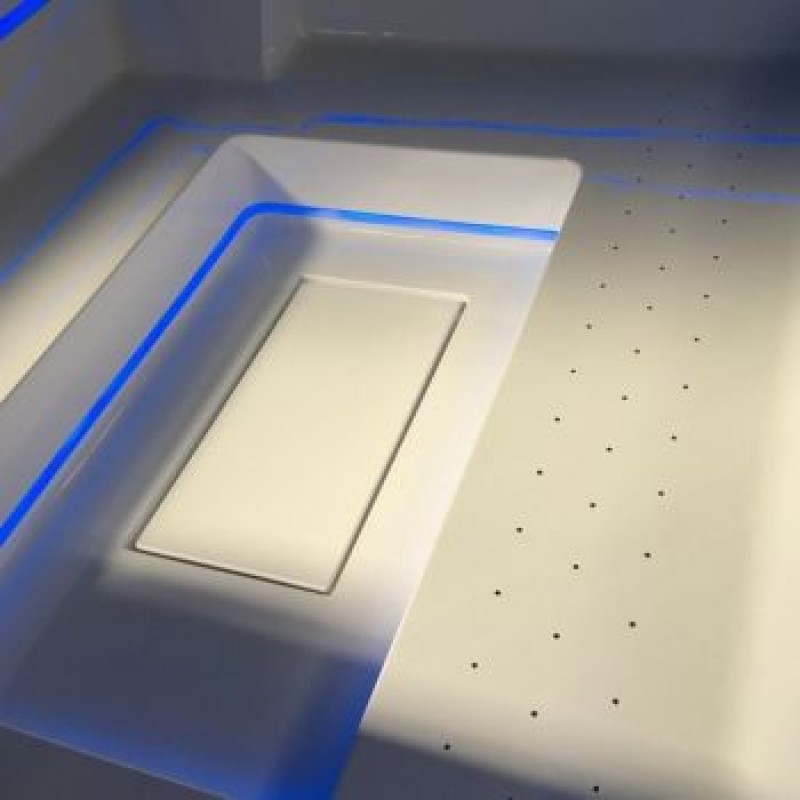 Минибассейн отдельнстоящий в комплектации Plus. Включает гидромассаж, систему рециркуляции и очистки воды, датчик уровня воды, нагреватель с регулировкой температуры и хромотерапию со светодиодом по периметру.