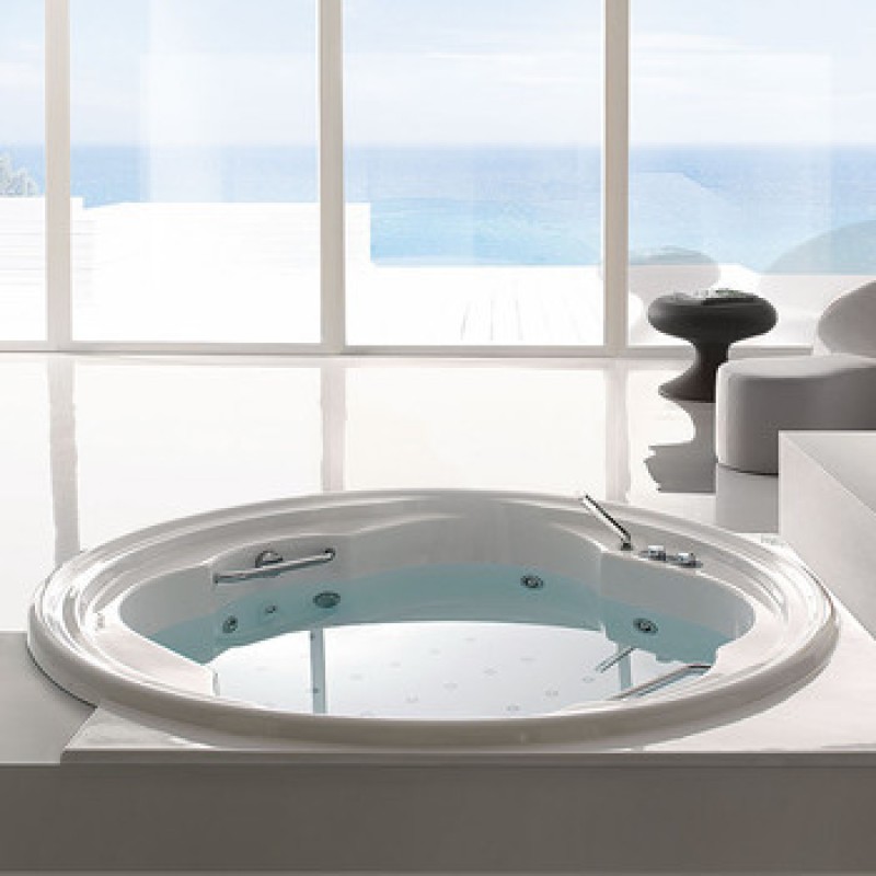 Ванна 185x185xh65 см. Максимальная комплектация. Невидимая система гидромассажа, Датчик уровня, Система дезинфекции, Стабилизатор температуры воды, Хромотерапия, Радио, Аудиовход для iPod/CD, Пульт дистанционного управления функциями, Электронные краны, Выдвижной душ.