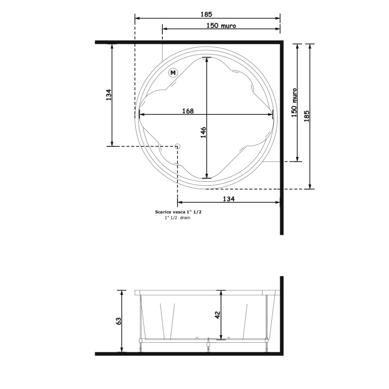 Gruppo Treesse Ninfa Ванна в современном стиле 185x185xh65 см — характеристики та опис