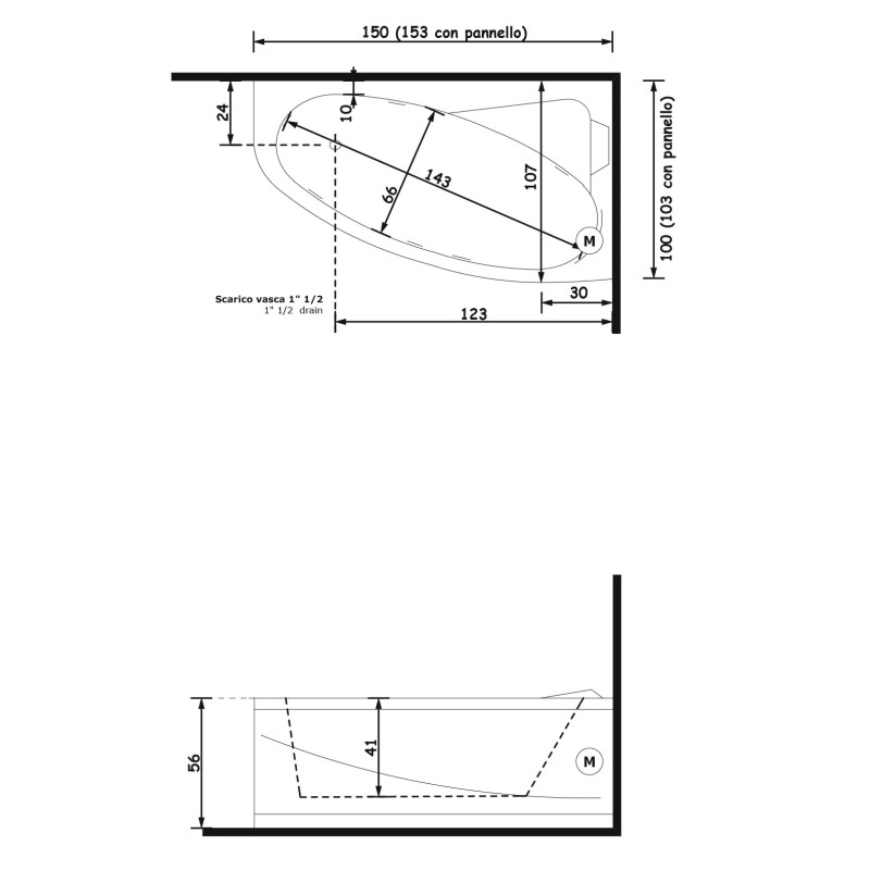 Gruppo Treesse Syria Ванна угловая в современном стиле 153x103xh63 см — характеристики та опис
