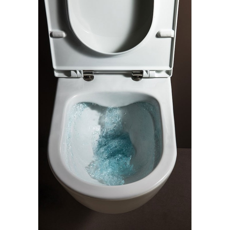 Комплект инсталяционной системы состоит из монтажного комплекта Duofix 458.126.00.1 от Geberit со сливным бачком, подвесного унитаза Pro Rimless H866957 с сиденьем Slim Soft Close от компании Laufen. В состав монтажного комплекта входят необходимые крепления для установки и звукоизоляционная прокладка.