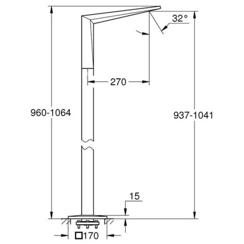 Схема с размерами на напольный излив Grohe Allure Brilliant (13301000)