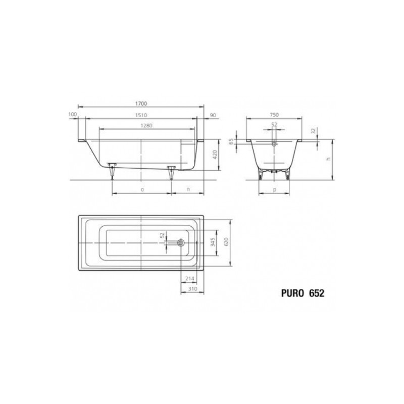 Видеообзор стальной ванны Kaldewei Puro 170x75 (256200013001) Чертеж с размерами стальной ванны Kaldewei Puro 170x75 (256200013001)