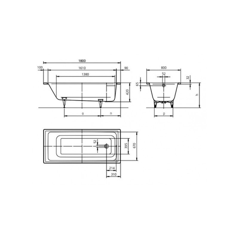 Видеообзор стальной ванны Kaldewei Puro 180x80 (256300013001) Чертеж с размерами стальной ванны Kaldewei Puro 180x80 (256300013001)
