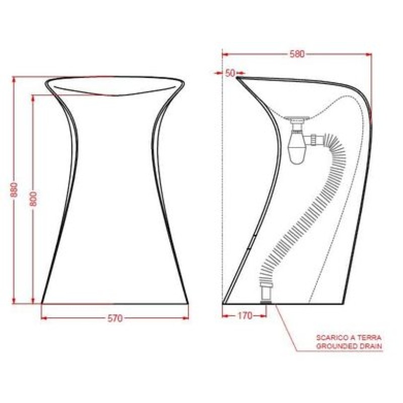 Схема с размерами каменной раковины Artceram Miss (OSL012 03; 00)