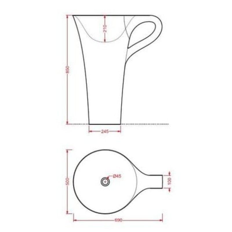 Схема с размерами каменной раковины Artceram Cup (OSL004 01; 00)