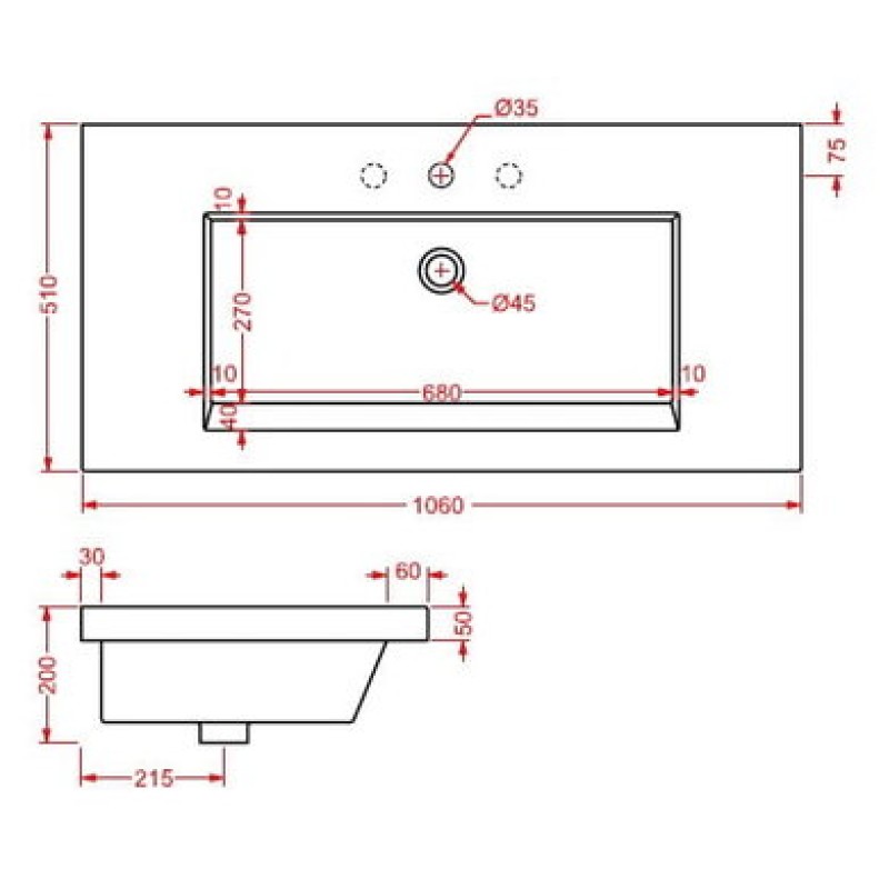 размер 1060x510х200 мм
