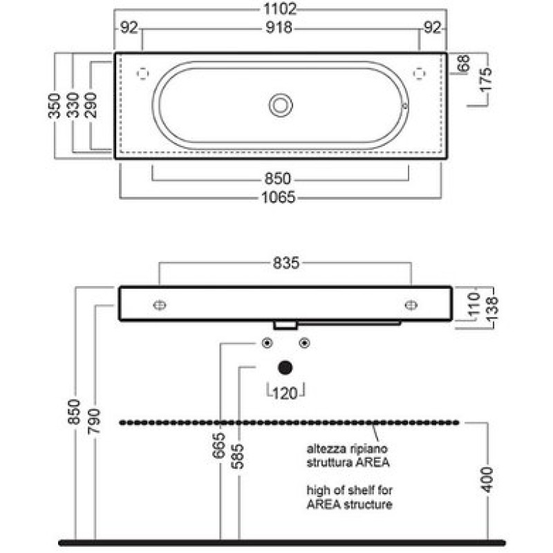 Керамическая раковина 110 см Hatria Area, белый (YxNG01) можна купити в нашому інтернет-магазині за ціною 12370.66 грн. Категорія: Сантехніка.