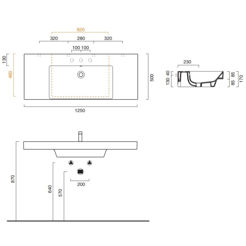 Керамическая раковина 125 см Catalano NEW ZERO, bianco lucido від Catalano, Раковины