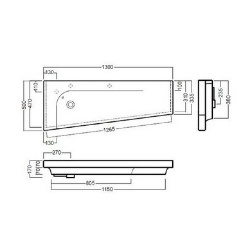 - без отверстий под смеситель