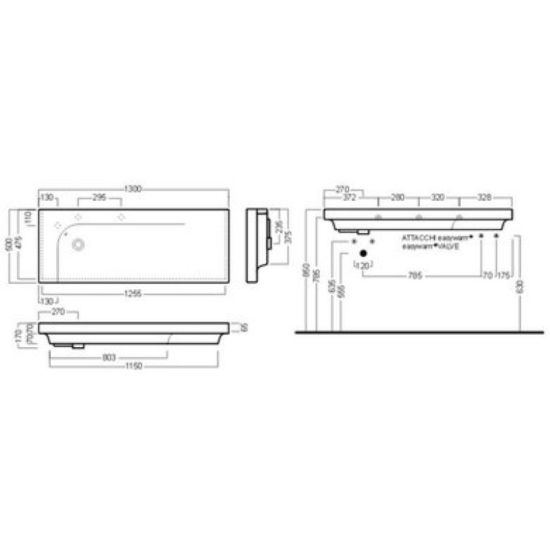 Схема с размерами керамической раковины Hatria Grandangolo (YXF401)