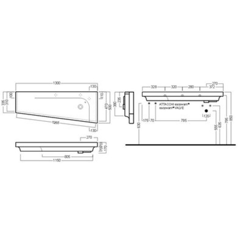 Схема с размерами керамической раковины Hatria Grandangolo (YXF601)