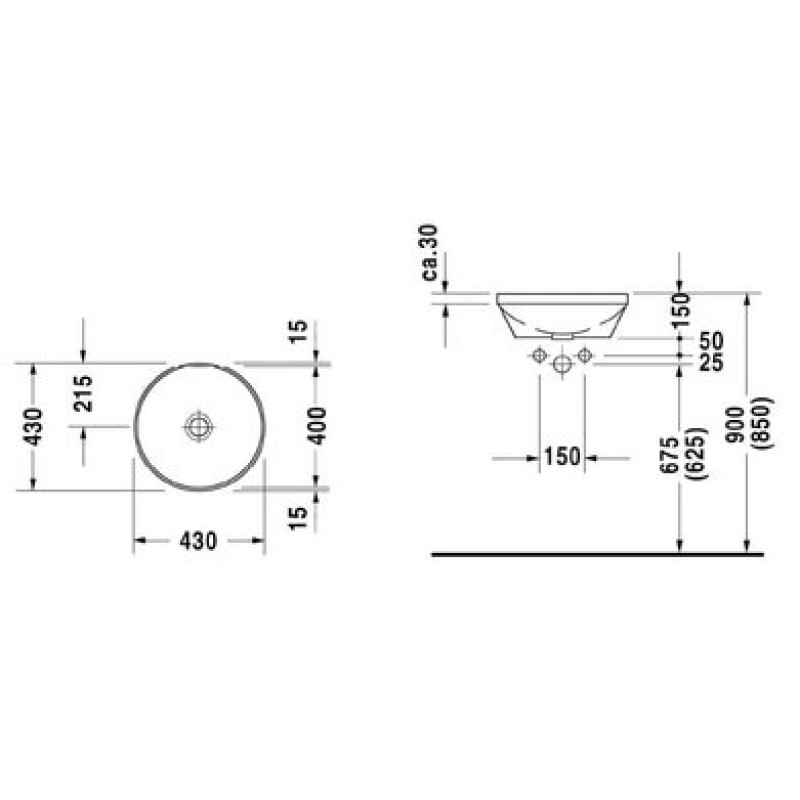 Схема с размерами керамической раковины Duravit Architec (0463400000)