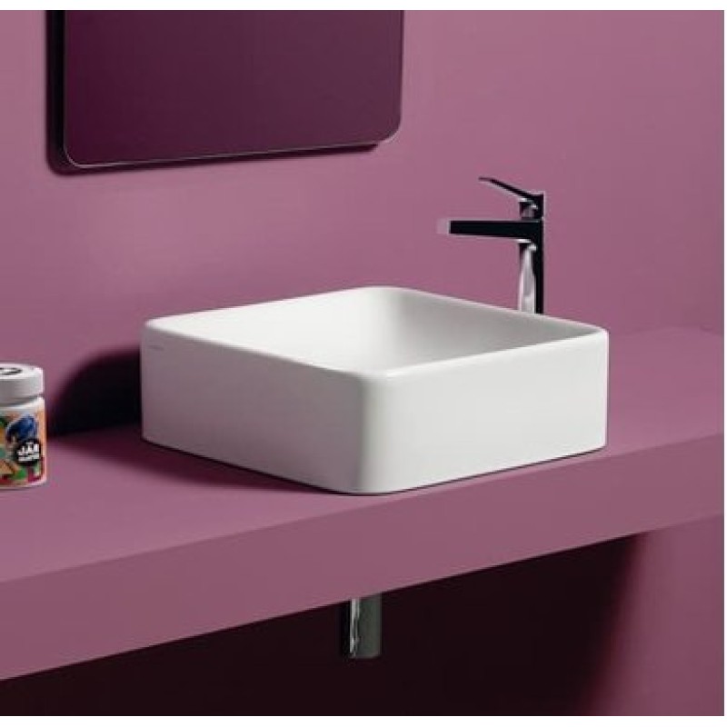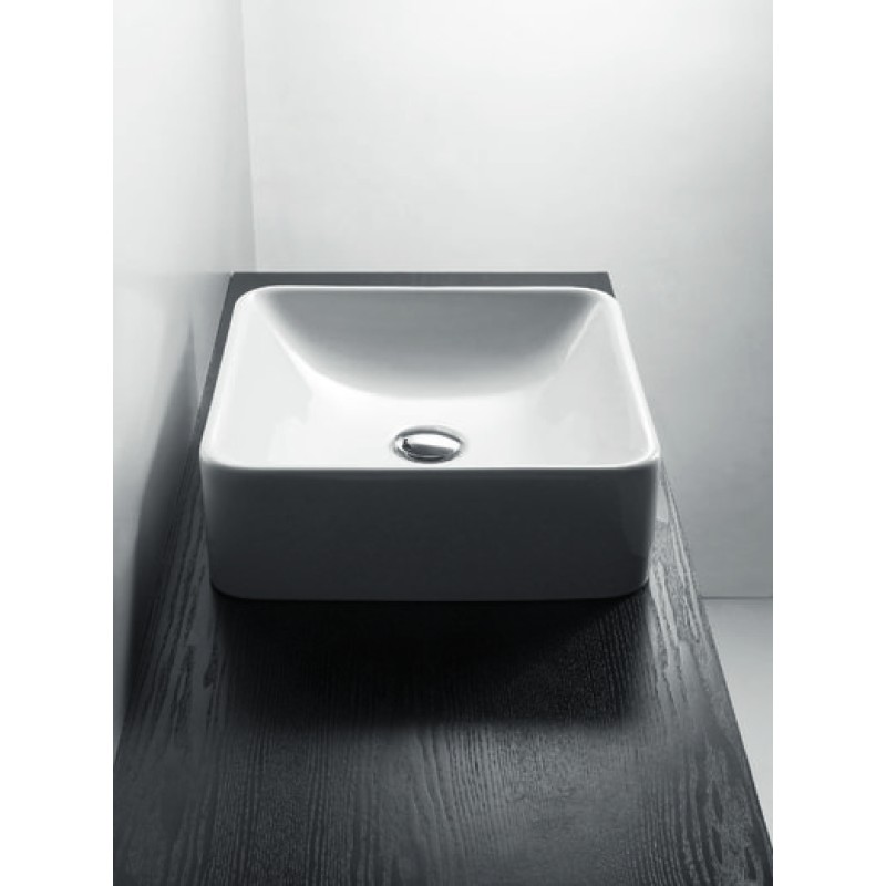 Описание керамической раковины Simas Flow (FL 11) размер 430x430х140 мм вес 8 кг цвет - белый материал - керамика без отверстия под смеситель без перелива установка: накладная на тумбу или столешницу без плоскости под с...