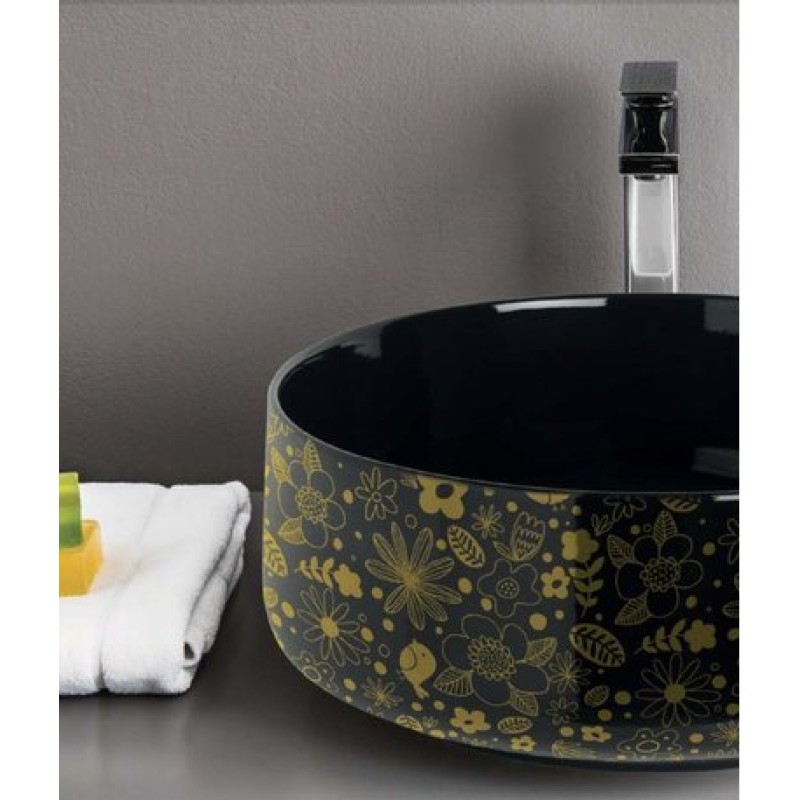 Описание керамической раковины Artceram Cognac (COL001 01; 87) размер 420x420х160 мм вес 8 кг цвет - белый глянцевый с декором материал - керамика без отверстия под смеситель без перелива установка: накладная на тумбу и...