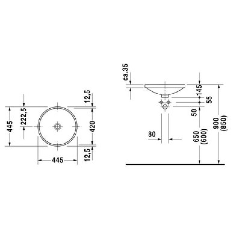 Схема с размерами керамической раковины Duravit Architec (0319420000)