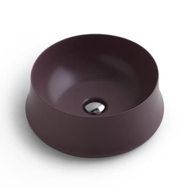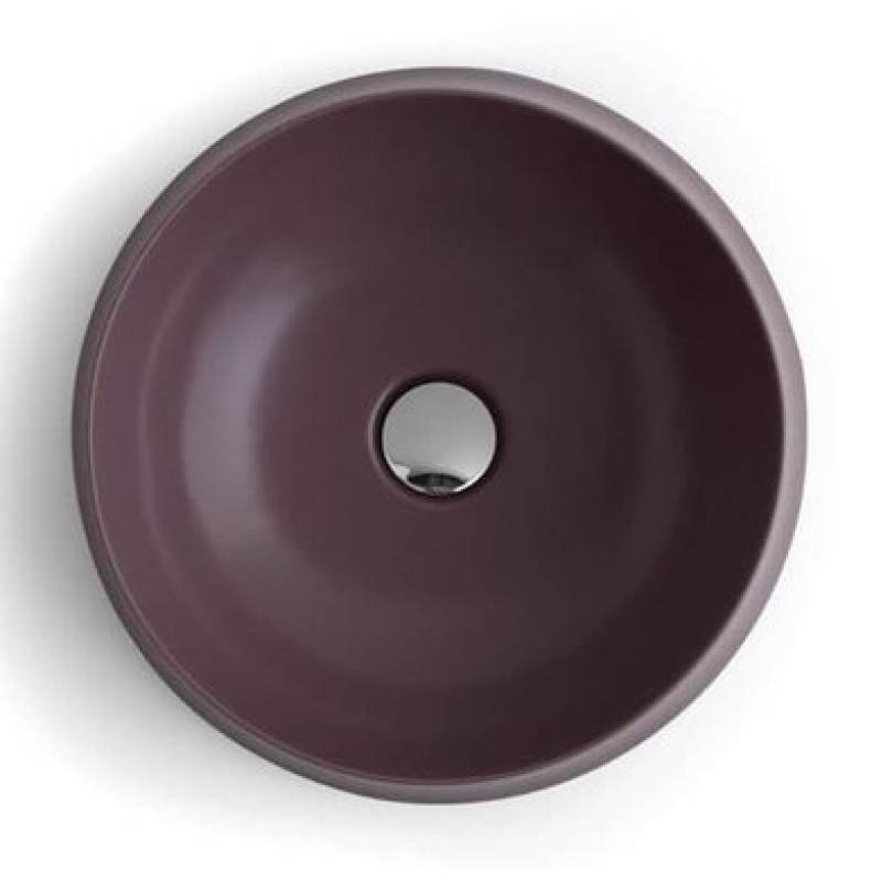 Описание керамической раковины Simas Sharp (SH 02) размер 420x420х160 мм вес 8 кг цвет - фиолетовый матовый (Prugna matt) материал - керамика без отверстия под смеситель без перелива установка: накладная на тумбу или ст...