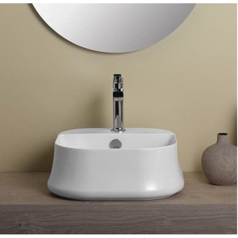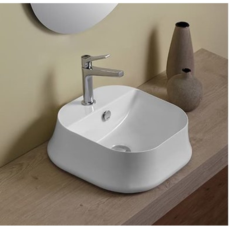Описание керамической раковины Simas Sharp (SH 07) размер 420x420х160 мм вес 11 кг цвет - белый материал - керамика с центральным отверстием под смеситель с переливом установка: накладная на тумбу или столешницу с плоск...