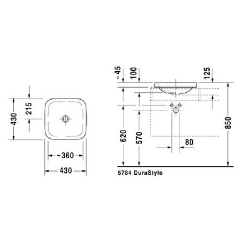 Схема с размерами керамической раковины Duravit DuraStyle (0372430000)