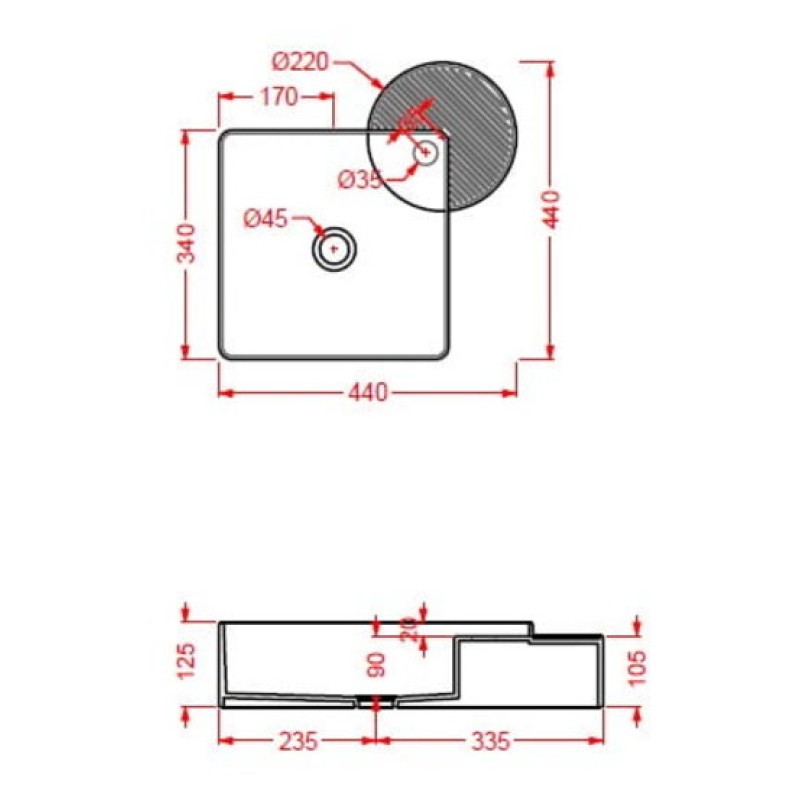 Схема с размерами керамической раковины Artceram Cartesio (CAL003 01; 00)