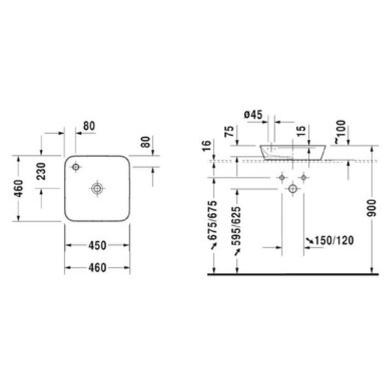 Схема с размерами керамической раковины Duravit Cape Cod (2340460000)