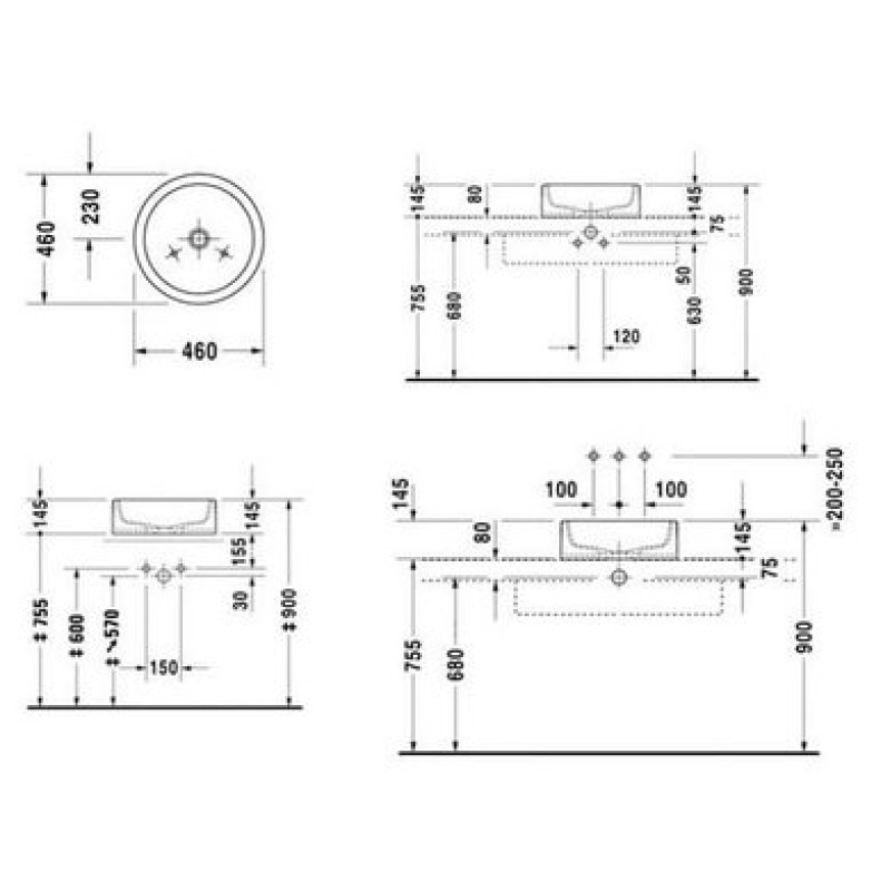 Схема с размерами керамической раковины Duravit Starck 1 (0445460000)