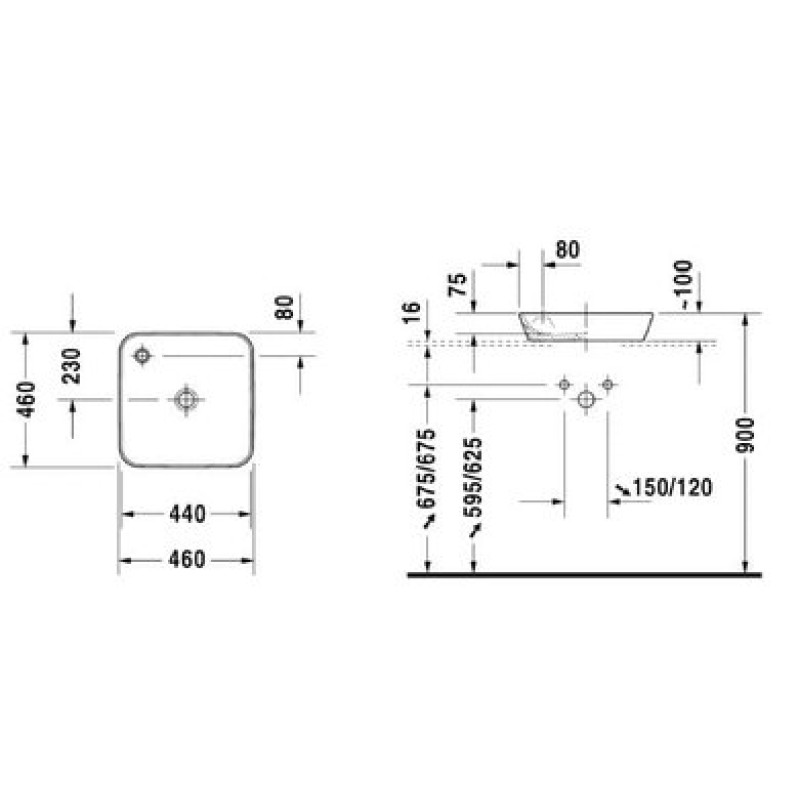 Схема с размерами керамической раковины Duravit Starck 1 (2322460000)