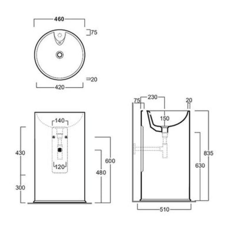 Описание керамической раковины Simas Top-Lavabi (GTE) размер 460x460х835 мм вес 37 кг цвет - белый материал - керамика намеченное отверстие под смеситель с переливом установка: напольная с плоскостью под смеситель Д...