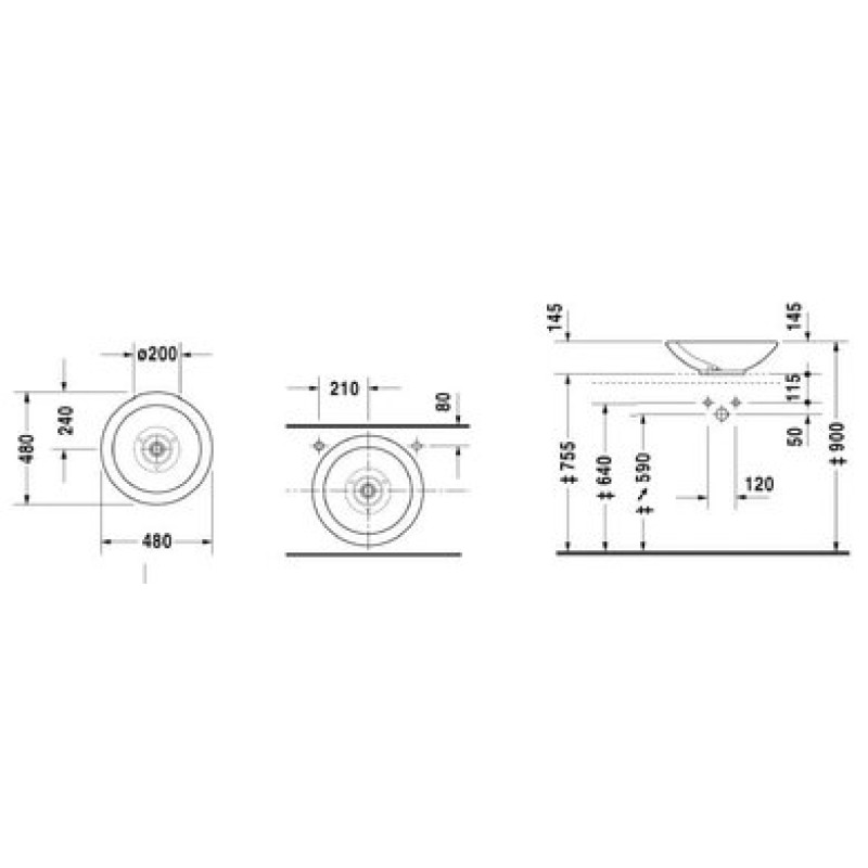 Схема с размерами керамической раковины Duravit Bagnella (0451480000)