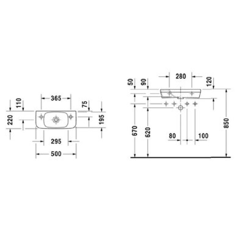Схема с размерами керамической раковины Duravit DuraStyle (0713500000)