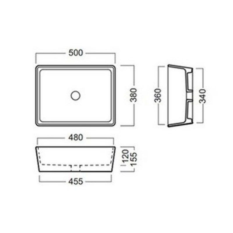Схема с размерами керамической раковины Hatria Happy Hour 11:15 (YXSQ01)