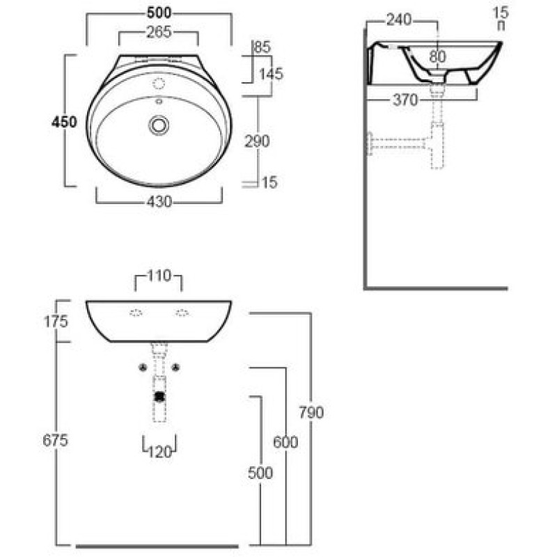 Схема с размерами керамической раковины Simas Bohemien (BO 10)