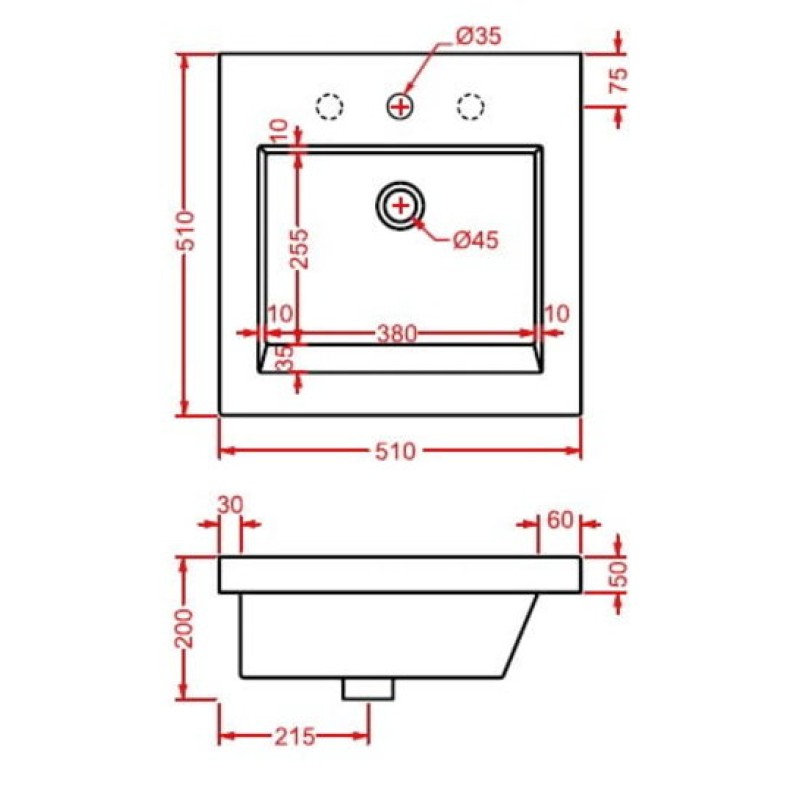 размер 510x510х200 мм