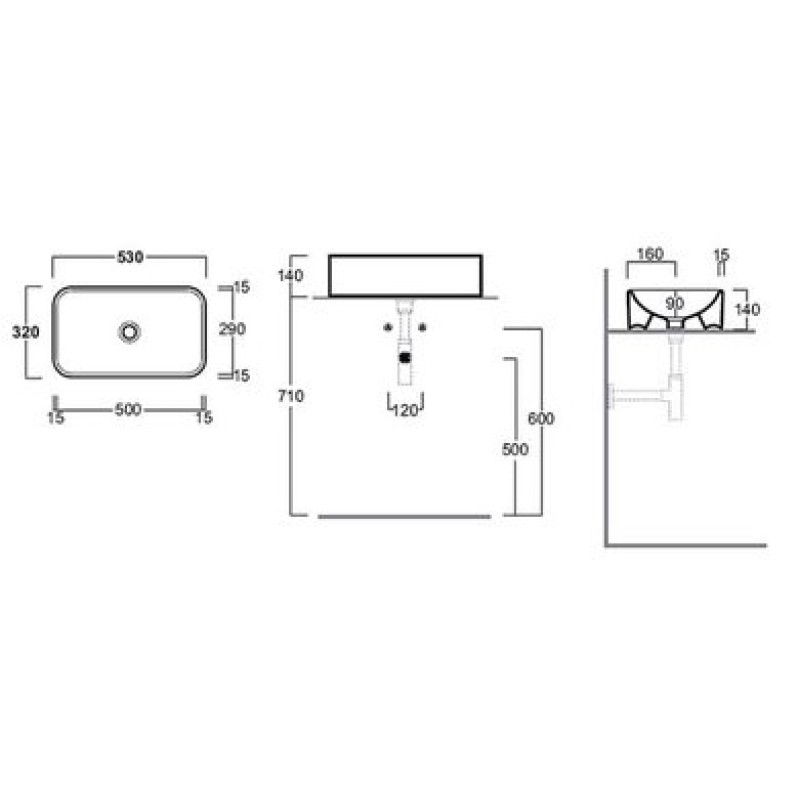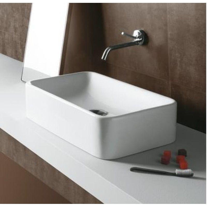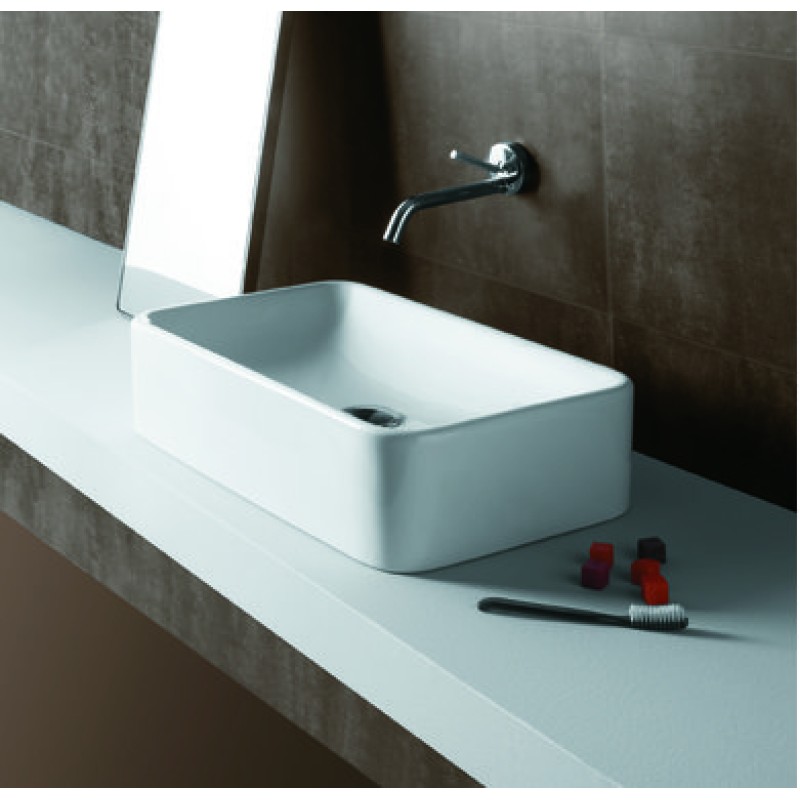 Описание керамической раковины Simas Flow (FL 12) размер 530x320х140 мм вес 8 кг цвет - белый материал - керамика без отверстия под смеситель без перелива установка: накладная на тумбу или столешницу без плоскости под с...