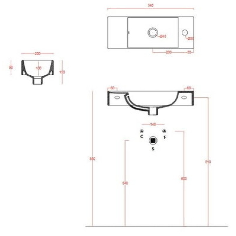- размер 540x200х150 мм