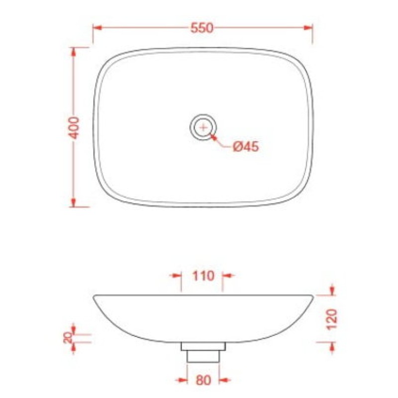 Схема с размерами керамической раковины Artceram La Fontana (LFL006 01; 00)