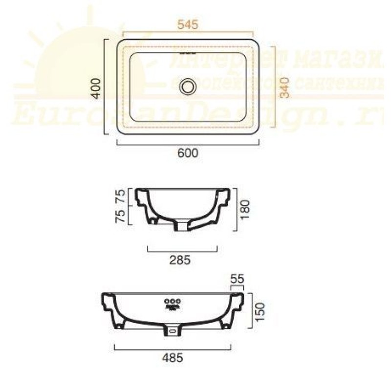 Керамическая раковина 55 см Catalano Canova Royal можна купити в нашому інтернет-магазині за ціною 0.00 грн. Категорія: Сантехніка.