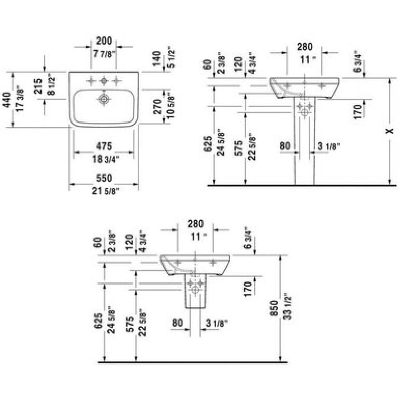 Схема с размерами керамической раковины Duravit DuraStyle (2319550000)