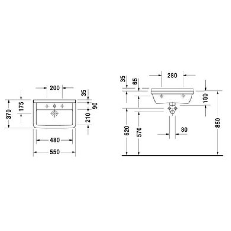 Схема с размерами керамической раковины Duravit Starck 3 (0301550000)