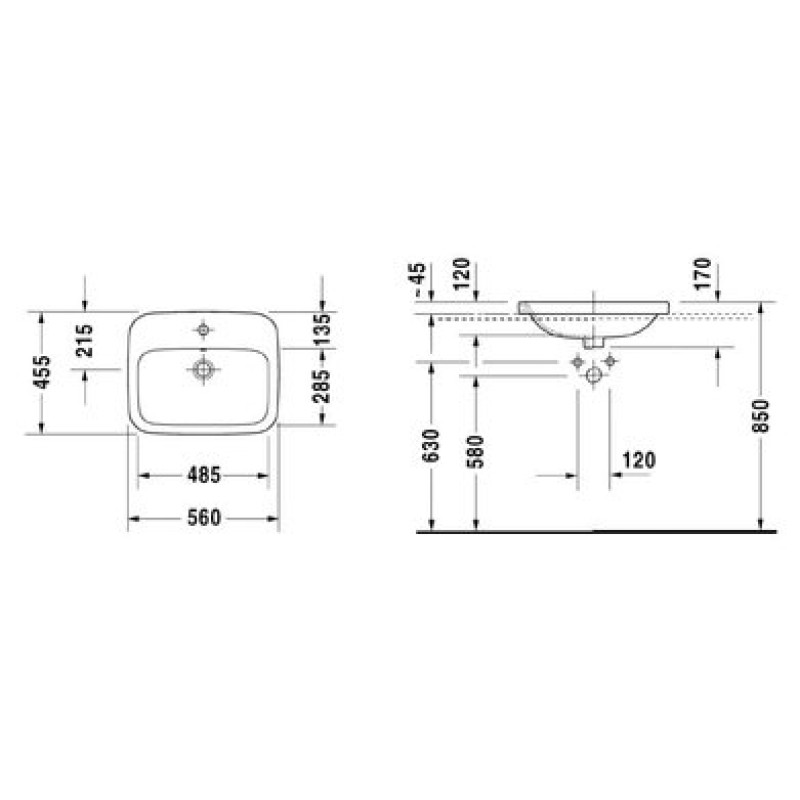 Схема с размерами керамической раковины Duravit DuraStyle (0374560000)