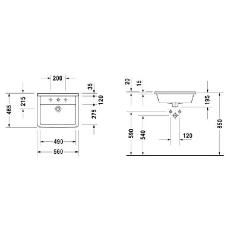 Схема с размерами керамической раковины Duravit Starck 3 (0302560000)