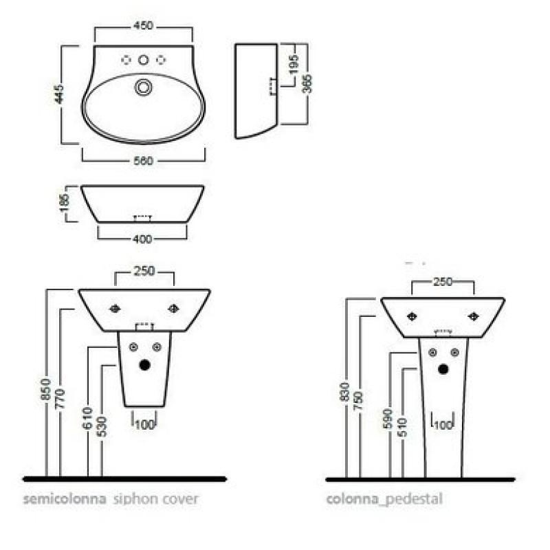 Схема с размерами керамической раковины Hatria Nido (YXEL01)