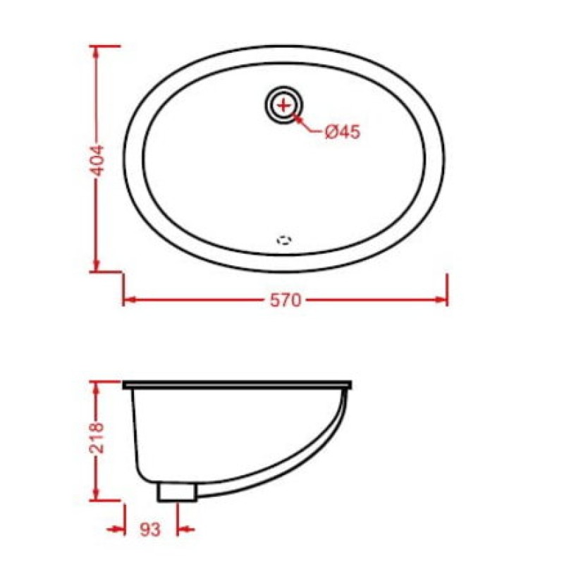 Схема с размерами керамической раковины Artceram Diana (DIL001 01; 00)