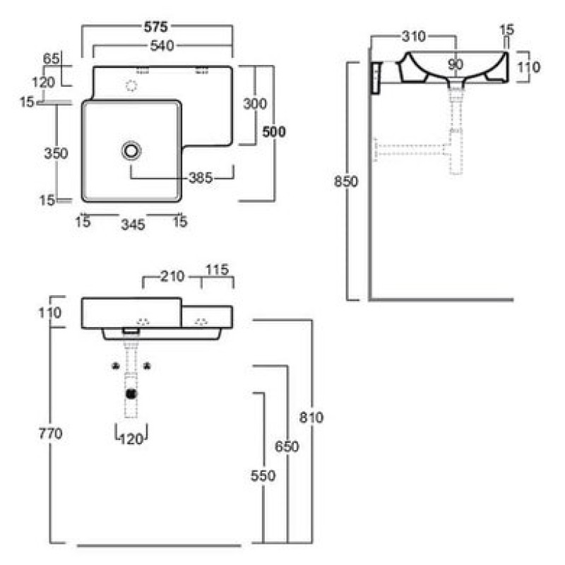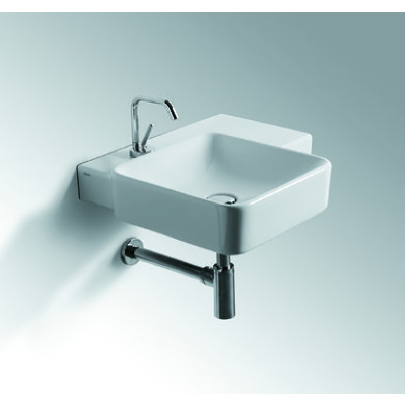 Описание керамической раковины Simas Flow (FL 21) размер 575x500х110 мм вес 13 кг цвет - белый материал - керамика намеченное центральное отверстие под смеситель без перелива установка: подвесная с плоскостью под смесит...