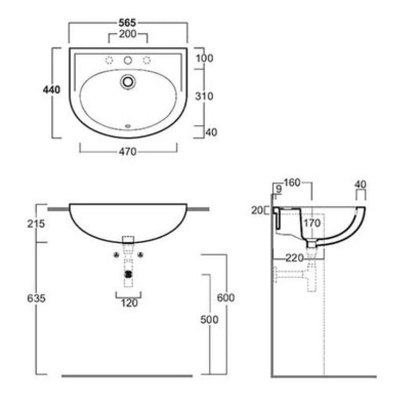 Схема с размерами керамической раковины Simas Top-Lavabi (S 58)