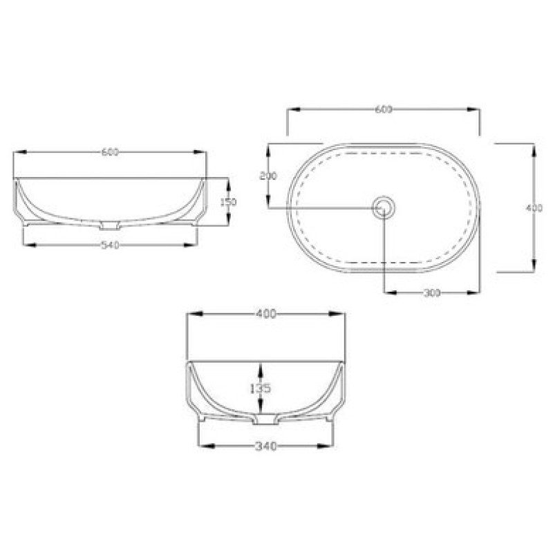 Схема с размерами керамической раковины Artceram Gio Evolution (GIL003 01; 00)