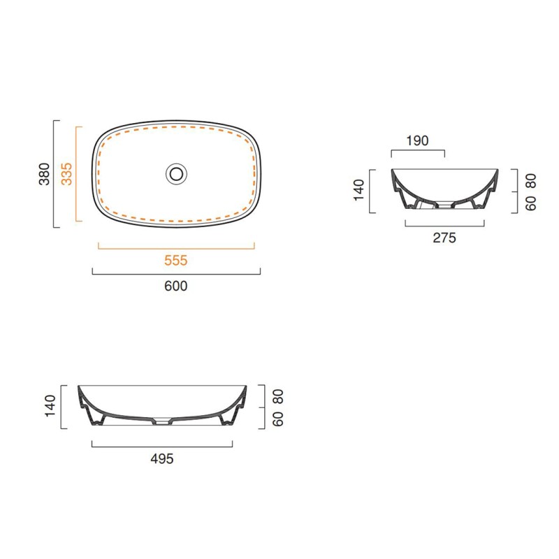 Керамическая раковина 60 см Catalano Green Lux, cemento satinato — характеристики та опис