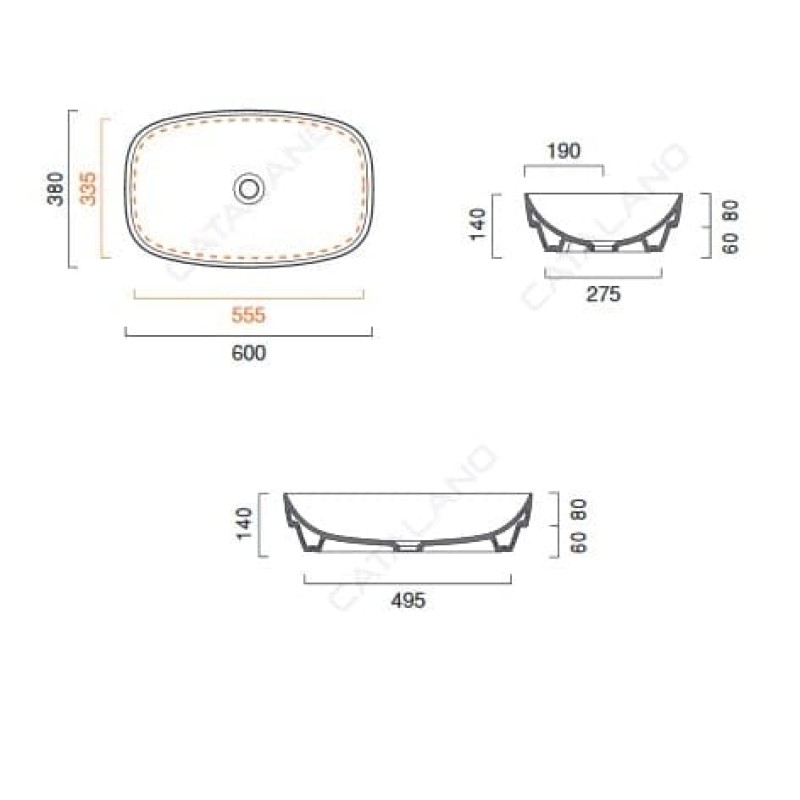 Керамическая раковина 60 см Catalano Green Lux, серая — характеристики та опис